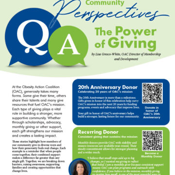 As we celebrate our 20th anniversary, help us work toward a future where everyone affected by obesity gets the support, resources, and care they need to thrive.
